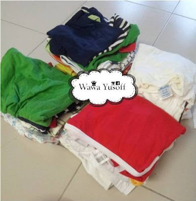 10 helai baju baru untuk adik. Size newborn dan 0-3 month je mommy beli. sebab memang dah janji seminggu kalau boleh adik mesti pakai baju baru. lepas tu baru recycle baju abang :)
